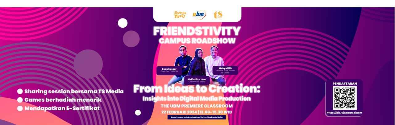 TS Media dan Friendstivity main ke Universitas Bunda Mulia untuk berbagi mengenai produksi konten media digital langsung dari praktisi yang berpengalaman.